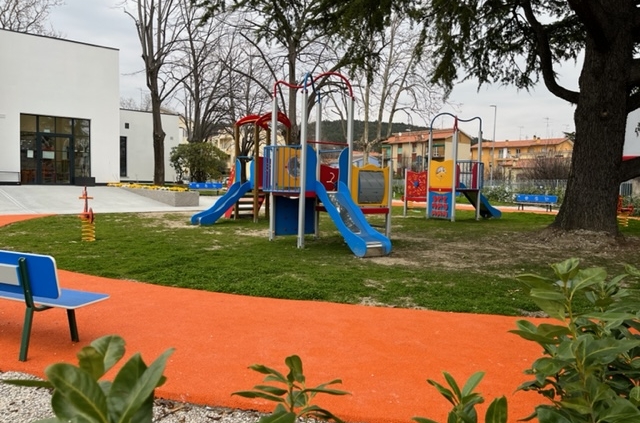 Nuova zona di giochi per la Scuola Materna di Monfalcone (GO). I prodotti POZZA rispecchiano la qualità Made in Italy, e sono ideati, progettati e costruiti interamente in Italia.
