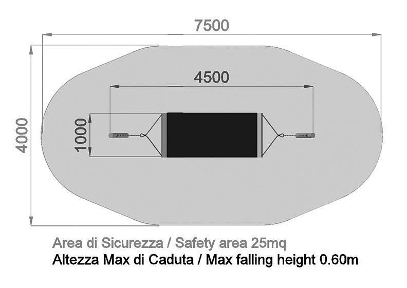 NR 1 Hammock - Hammock made of reinforced rubber with supporting structure made of steel rope covered in nylon and stainless steel chain
