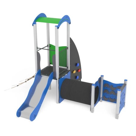 - NR 1 Straight slide h 90 cm - slide with lateral sides made of polyethylene and stainless steel slide certified according to the existing rules; starting platform height 90 cm; provided with a transversal bar.