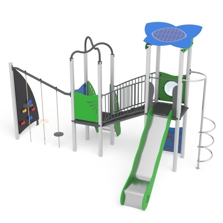 inclusive structure, multilevel towers, 2 slides and accessible lifts