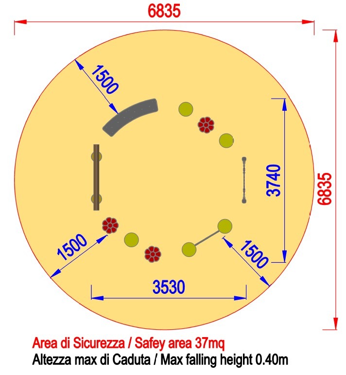 BABY ALU BALANCE PATH - BALANCE PATH MADE UP OF MANY ELEMENTS / U0100B.PAL-05ALU / Made of EN EV6060 anodized alumium 9x9cm custom mold with rounded edges, minimum thickness 2,7mm