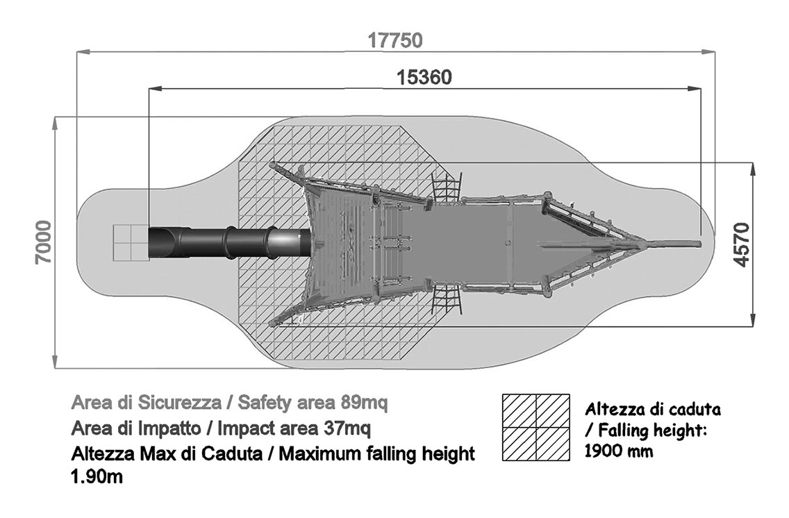 - NR 1 Tube-shaped slide h 190 cm diameter 80 cm - Polyethylene slide certified according to the existing rules; starting platform height 190 cm