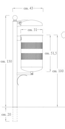 CESTINO TAORMINA CON COPERCHIO - steel bin / 208 BIS / Attrezzatura conforme alla normative Uni En 1176/1177. Prodotta da azienda certificata ISO 9001, ISO 14001, PEFC e FSC. Realizzata in acciaio zincato palo tondo diametro mm 100 spessore mm 2,5. Tutta la bulloneria e i sistemi di bloccaggio in acciaio inox