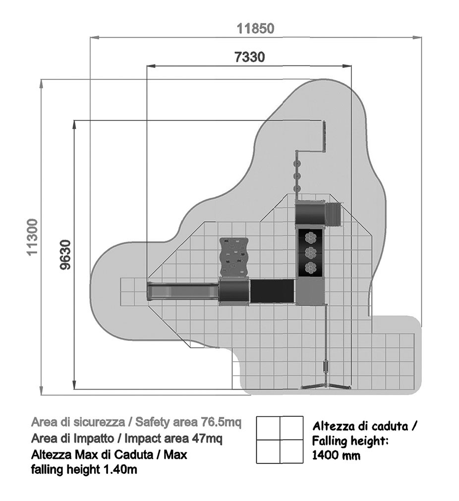 DRAGON CON ALTALENA, PALESTRA E TRIS ALLUMINIO - multi-level structure, towers, slide, lifts and gym / AF103AP.GT-01 style ALU / Made of EN EV6060 anodized alumium 9x9cm custom mold with rounded edges, minimum thickness 2,7mm