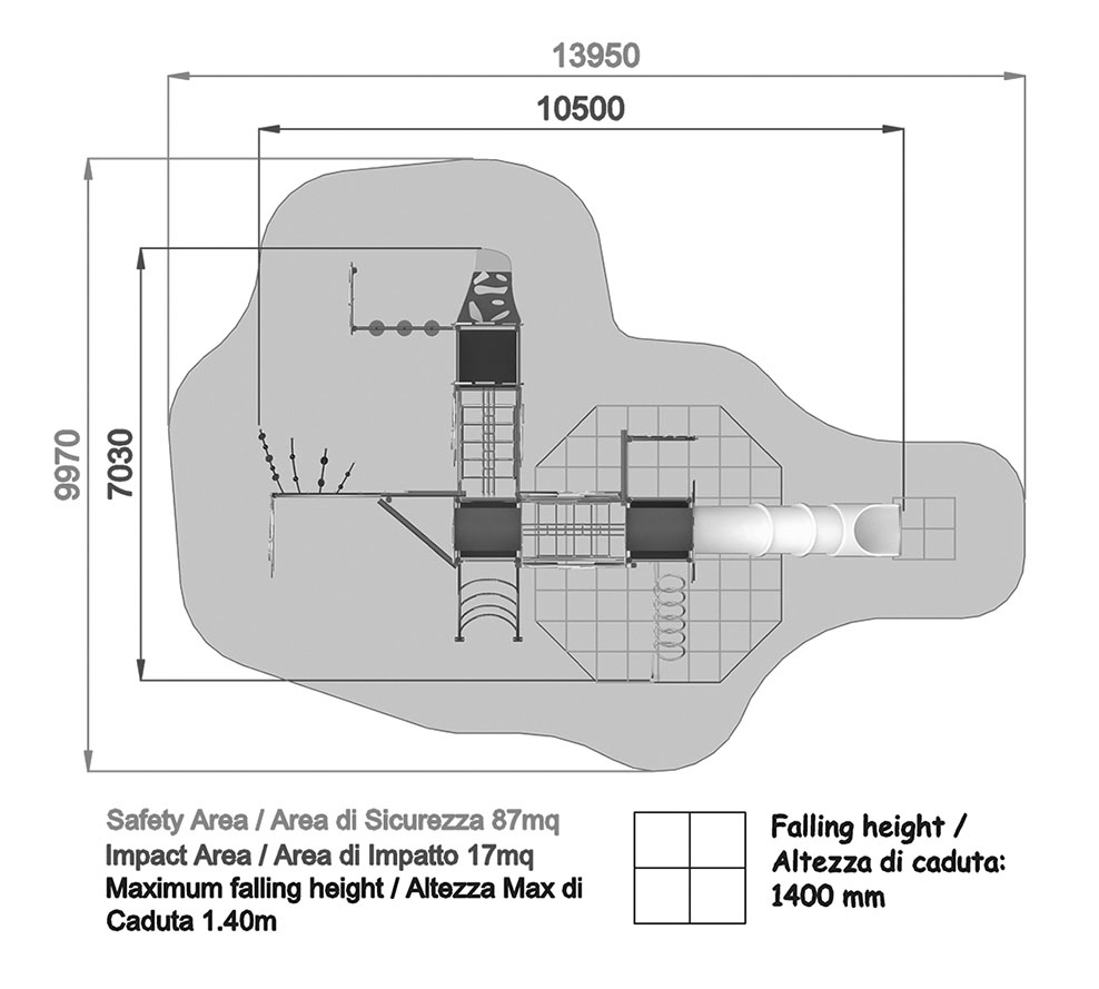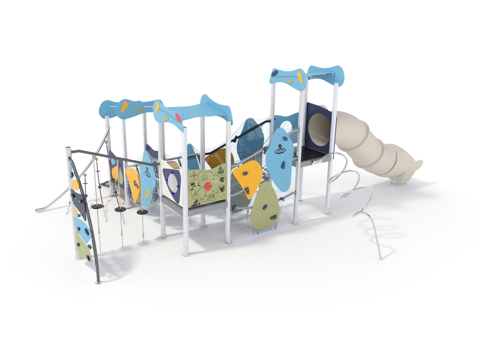 DRAGON CON PALESTRA A FUNI COLORI - 3 multilevel tower structure with gym / AF103.PAL-10COLORI / Made of EN EV6060 anodized alumium 9x9cm custom mold with rounded edges, minimum thickness 2,7mm