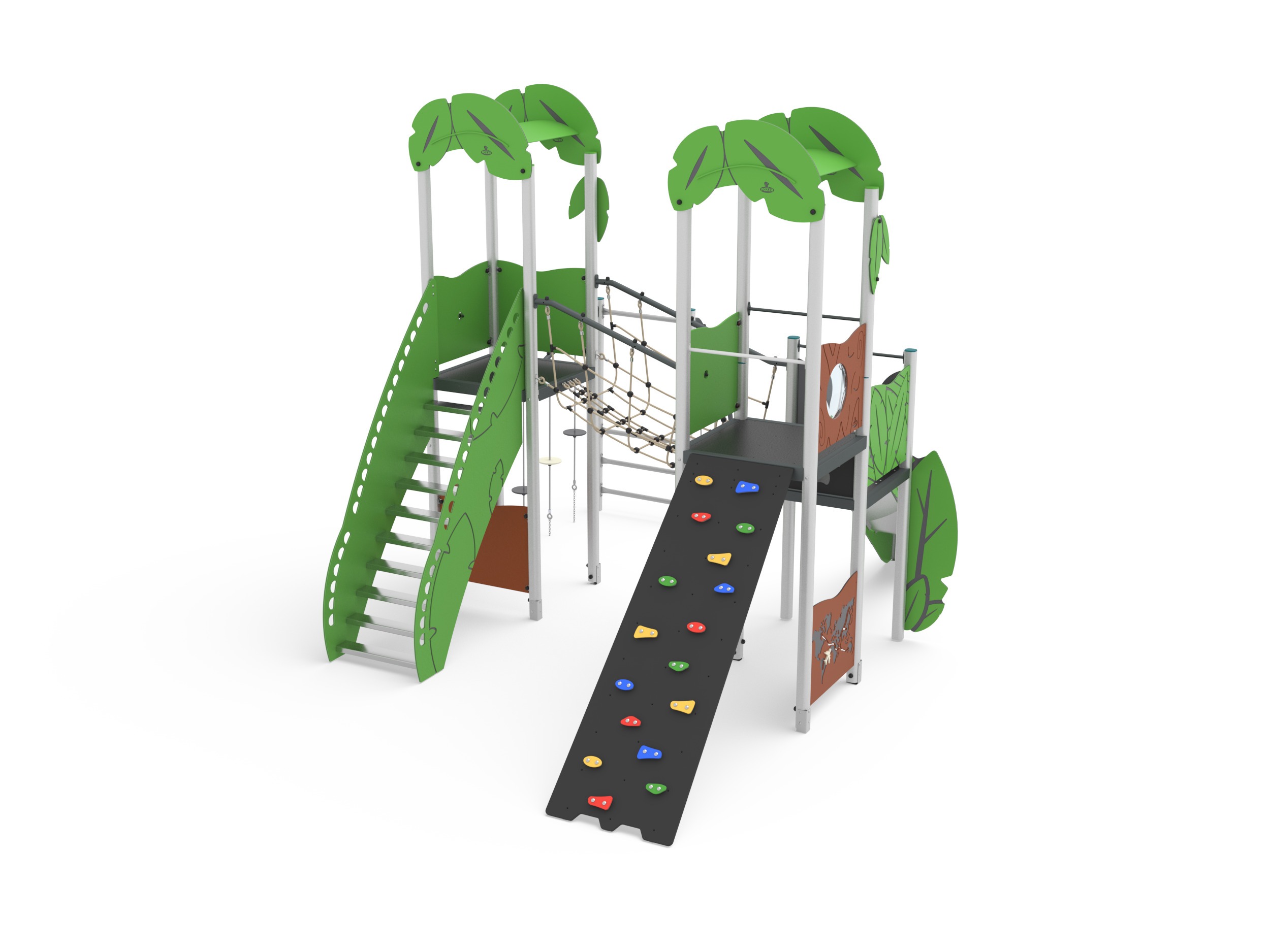 DRAGON H190 - LEAVES - MULTILEVEL STRUCTURE, GYMNASIUM, TIBETAN BRIDGE, SLIDE AND FIRE POLE. / +AF103.QT4-19_L_ALU
