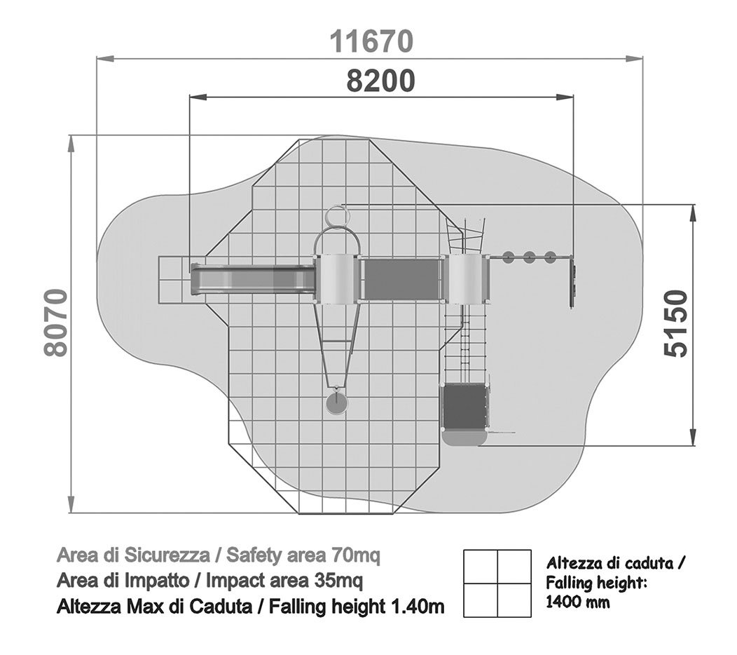 - NR 1 Shroud lift h 90 cm - Composed by climbing net in steel rope. Included by thrust bar