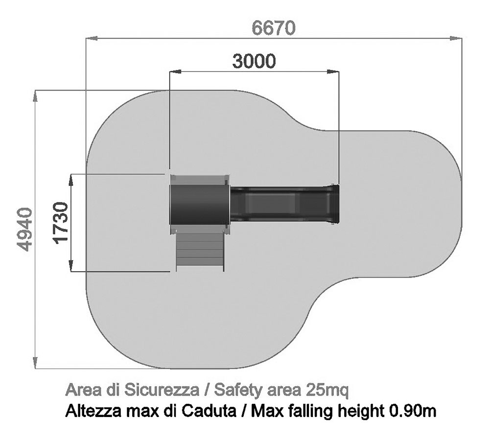 NR 1 Straight slide h 90 cm - slide with lateral sides made of polyethylene and stainless steel slide certified according to the existing rules; starting platform height 90 cm; provided with a transversal bar.