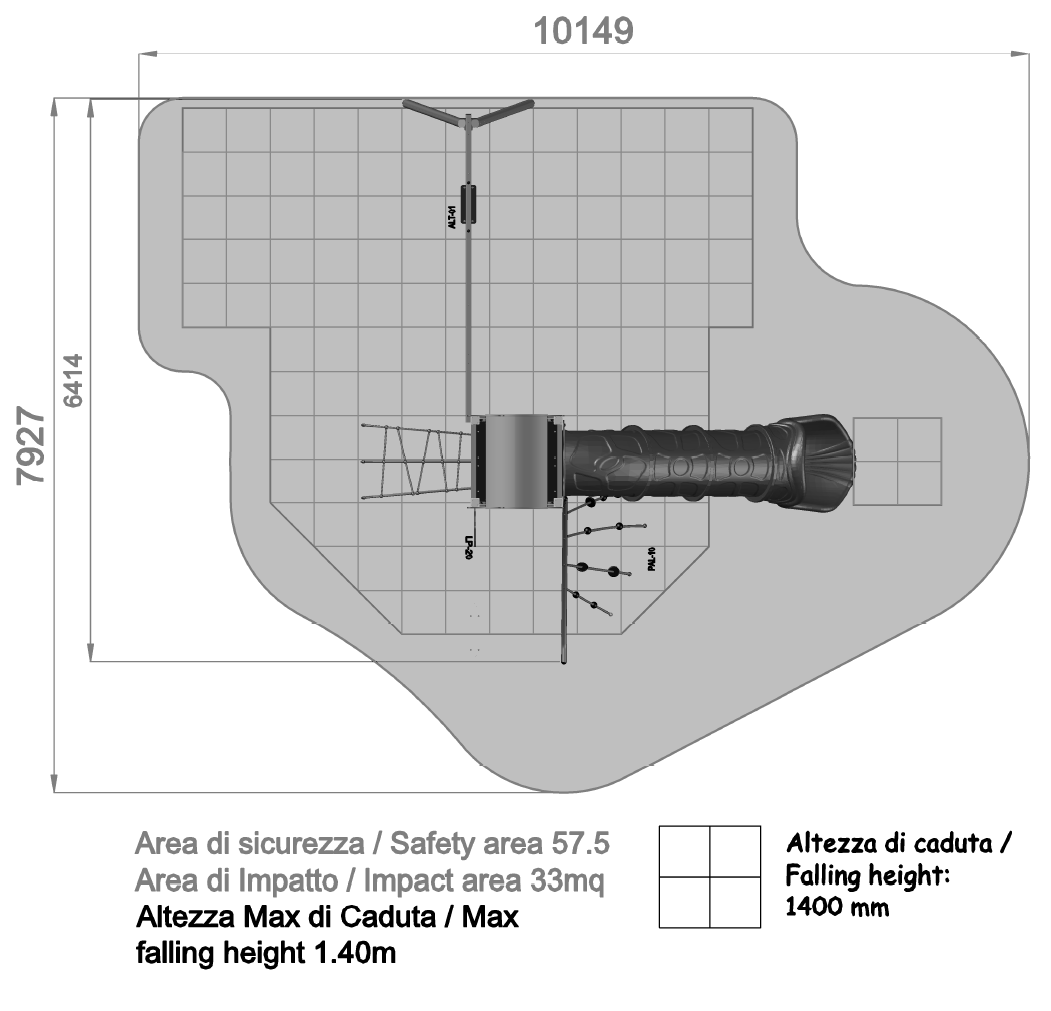 - NR 1 Tube-shaped slide h 140 cm diameter 80 cm - Polyethylene slide certified according to the existing rules; starting platform height 140 cm