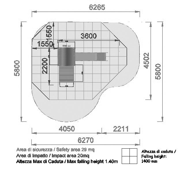 NR 1 Square tower h 140 cm - Manufactured with 4 posts having a 9 x 9 mm section by lamellar wood, 1 square platform placed at a height of 140 cm. Coloured polyethylene gable roof.