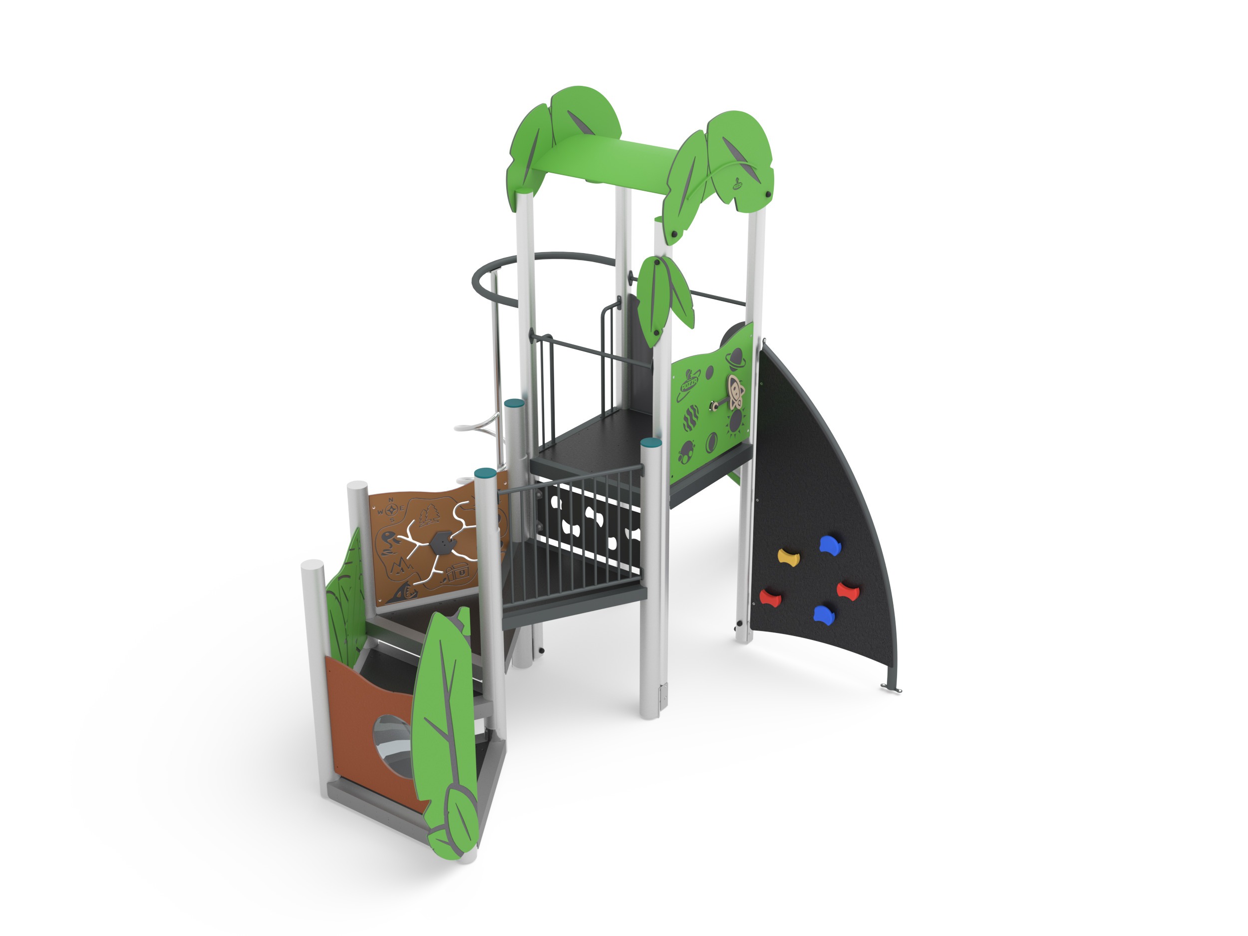 FRAGOLA WITH PERCH - LEAVES - INCLUSIVE STRUCTURE, SINGLE MULTILEVEL TOWER WITH SLIDES AND LIFT / +AF100B.SG-14_L_ALU