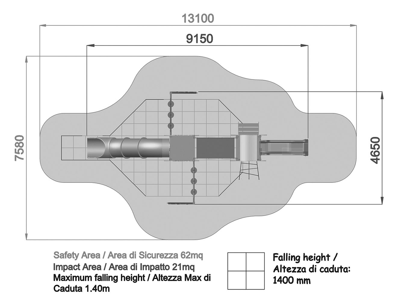 GIOCO BRUCO DUE TORRI CON SCIVOLO A TUBO ALLUMINIO - double tower structure with gym / AS102.SW-14ALU / Made of EN EV6060 anodized alumium 9x9cm custom mold with rounded edges, minimum thickness 2,7mm