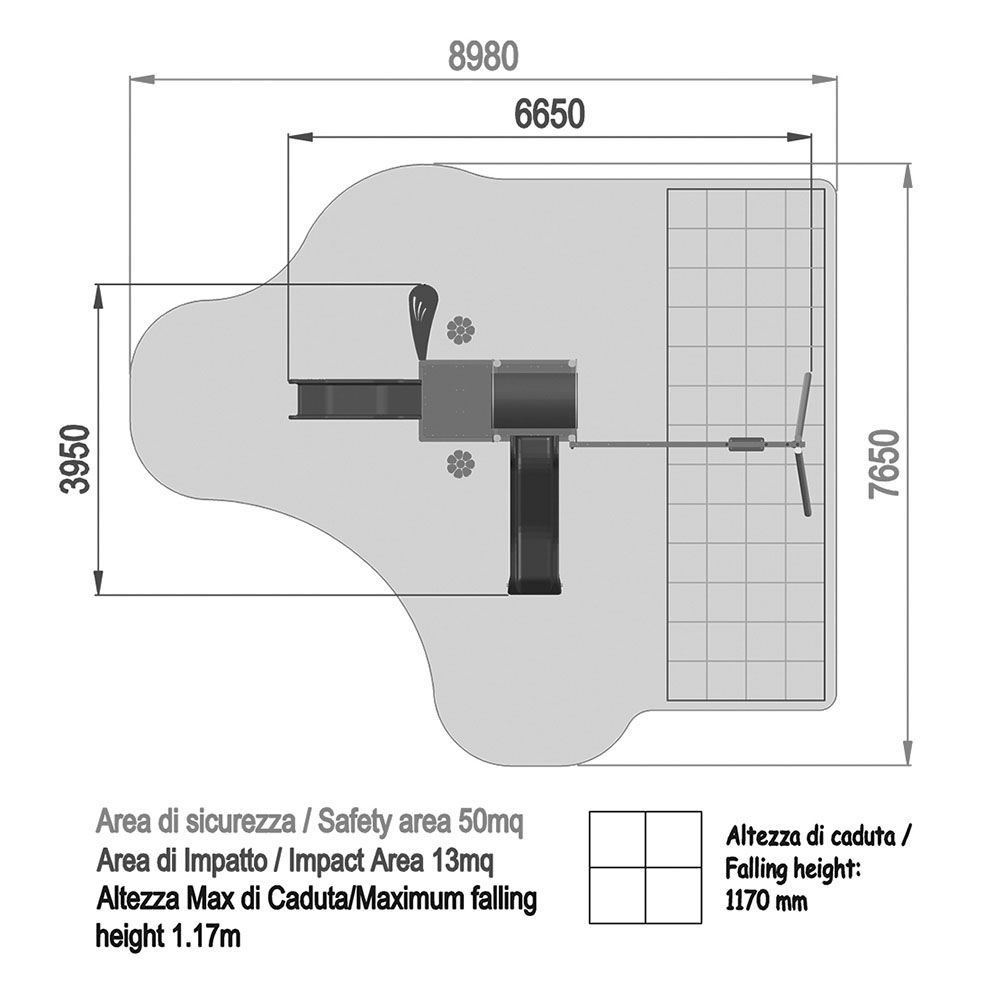 - NR 1 Straight slide h 90 cm - slide with lateral sides made of polyethylene and stainless steel slide certified according to the existing rules; starting platform height 90 cm; provided with a transversal bar.