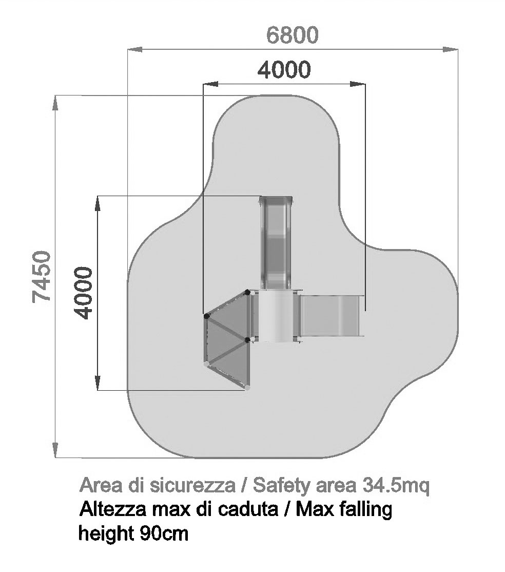 HOOK CON DOPPIO SCIVOLO LEAVES - inclusive structure, single multilevel tower with slide and lift / AF101.SG-6 LEAVES / Made of EN EV6060 anodized alumium 9x9cm custom mold with rounded edges, minimum thickness 2,7mm