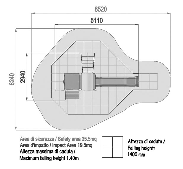 - NR 1 Square tower h 140cm style leaves - Composed by 4 posts having a 9 x 9 cm section by aluminium, 1 square platform placed at a height of 140 cm. Coloured polyethylene gable roof.