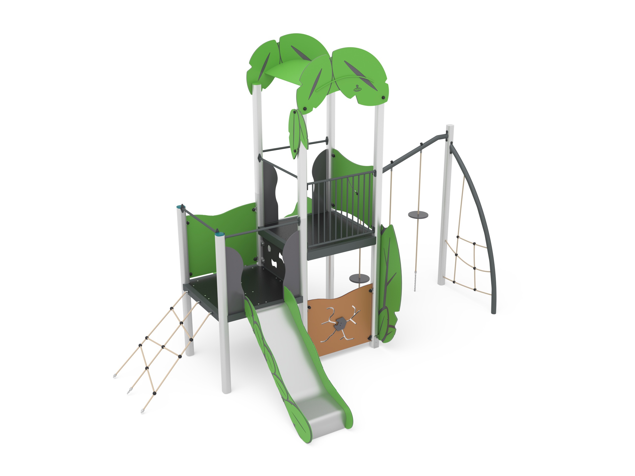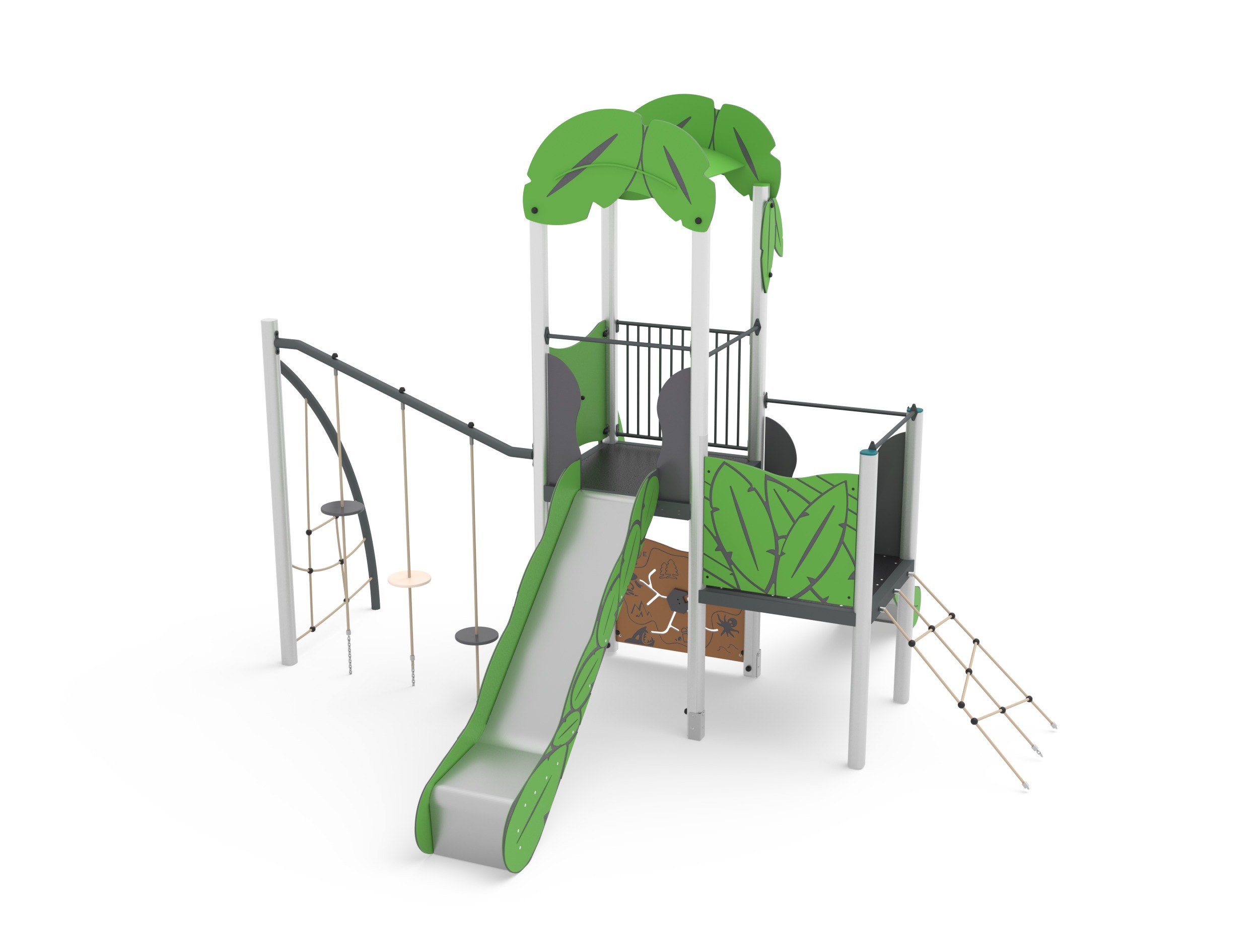 HOOK WITH GYM - LEAVES - SINGLE TOWER WITH SLIDE AND GYM / +AF101.EPAL_L_ALU
