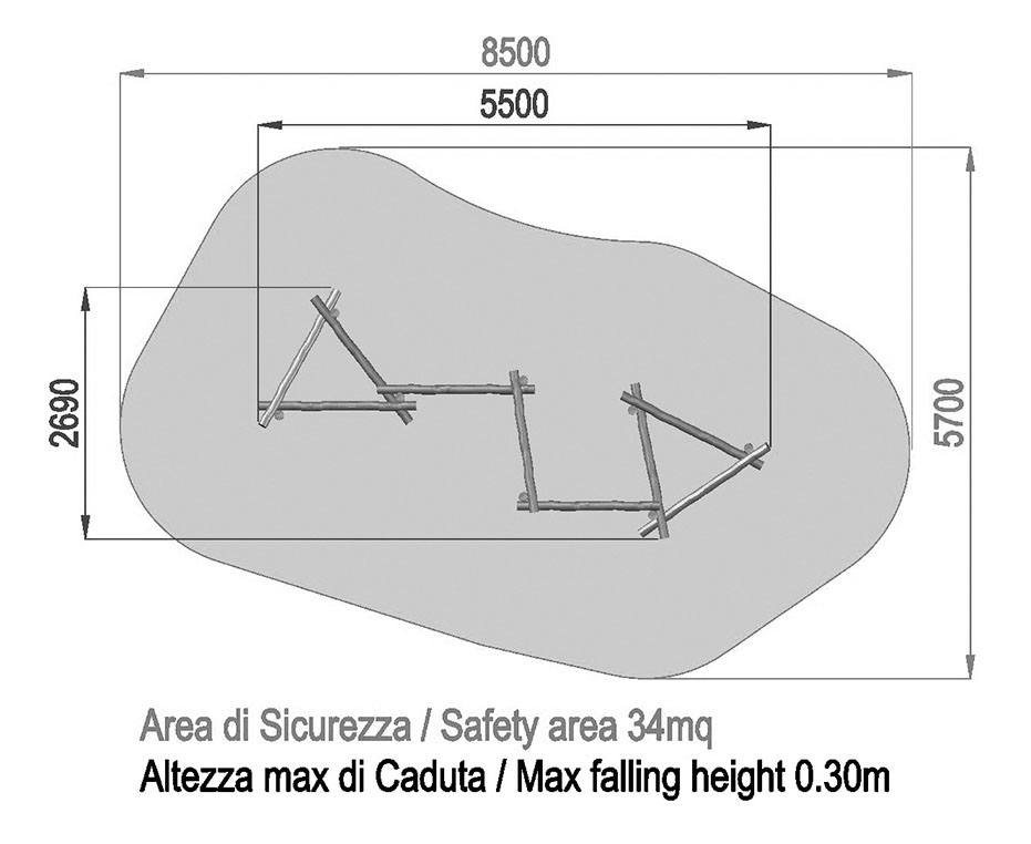 IMPIANTO DI EQUILIBRIO PRIMITIV - gym with intertwined poles for children / PV10 style PRIMTIV / Made of chestnut or black locust tree, peeled, smoothed, and with a natural and colored finish.
