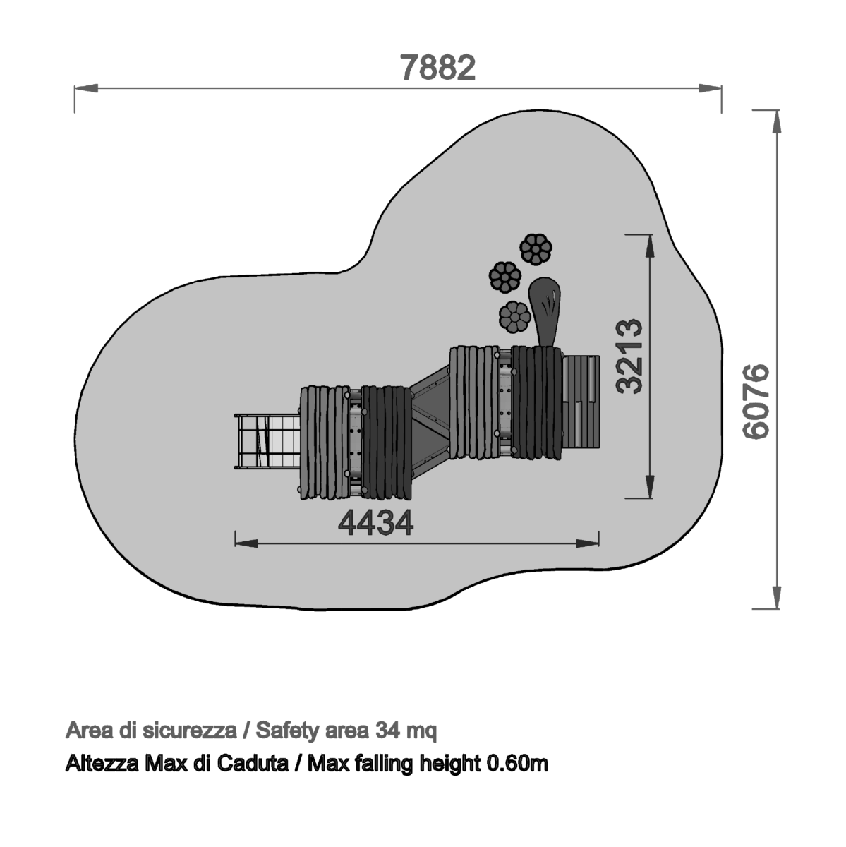 MERLINO WITH TUNNEL STYLE PRIMITIV - double tower structure, slide and lift and table / AF102B.TT-17 / Made of chestnut or black locust tree, peeled, smoothed, and with a natural and colored finish.