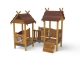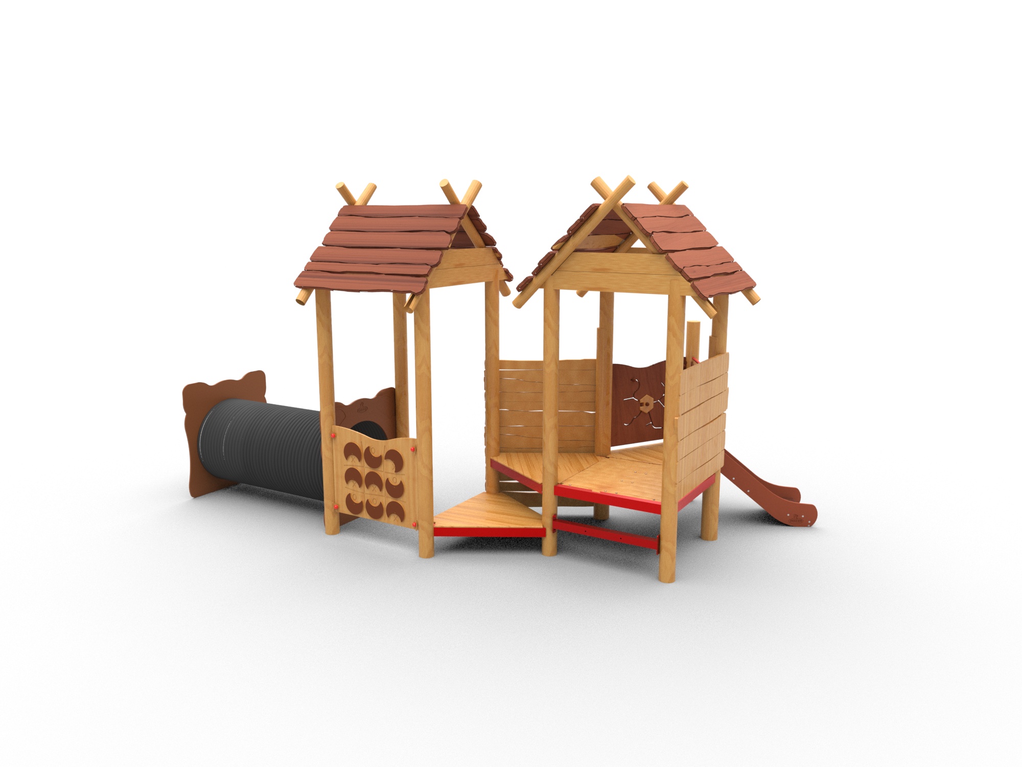 MERLINO WITH TUNNEL STYLE PRIMITIV - double tower structure, slide and lift and table / AF102B.TT-17 / Made of chestnut or black locust tree, peeled, smoothed, and with a natural and colored finish.