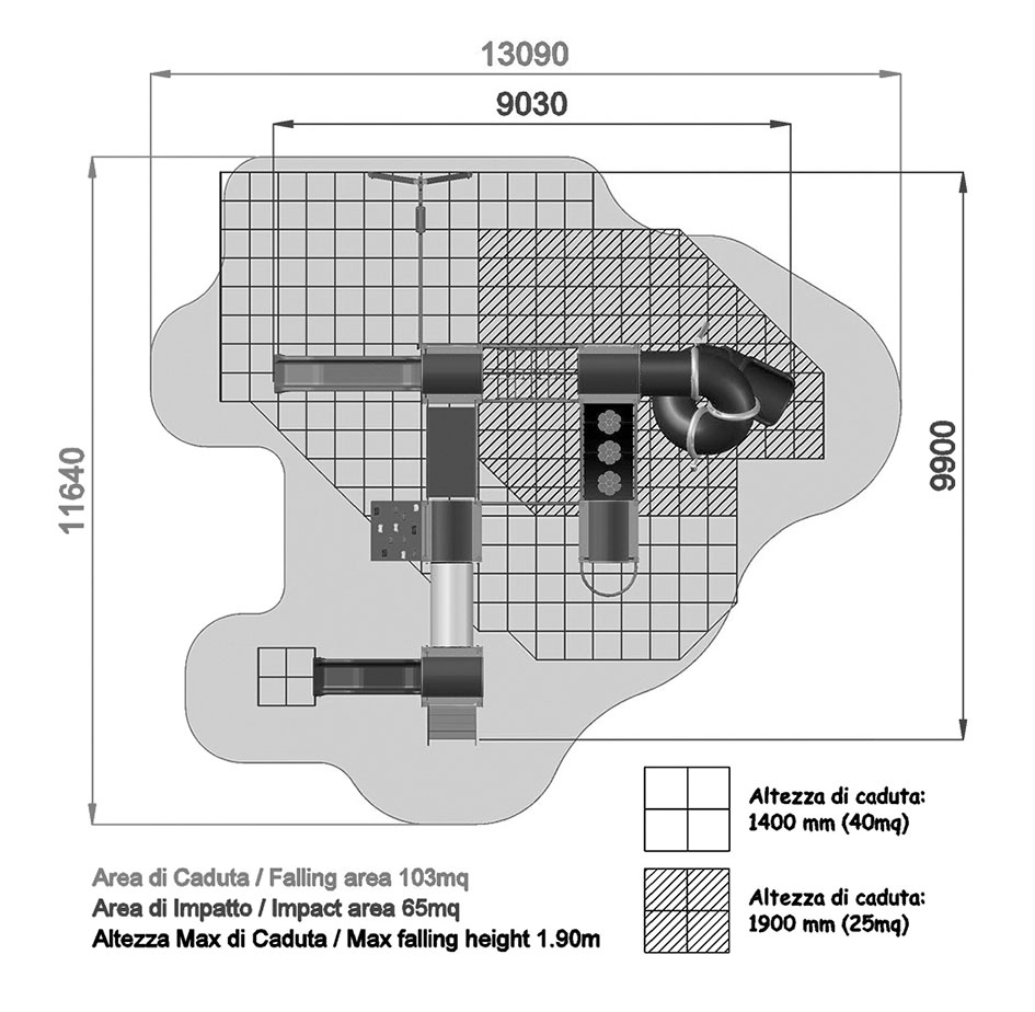 - NR 1 Scivolo h 140 cm LLDPE - Scivolo in polietilene realizzato secondo le normative vigenti, con partenza a 140 cm, completo di barra reggispinta e pannelli di tamponamento in polietilene.