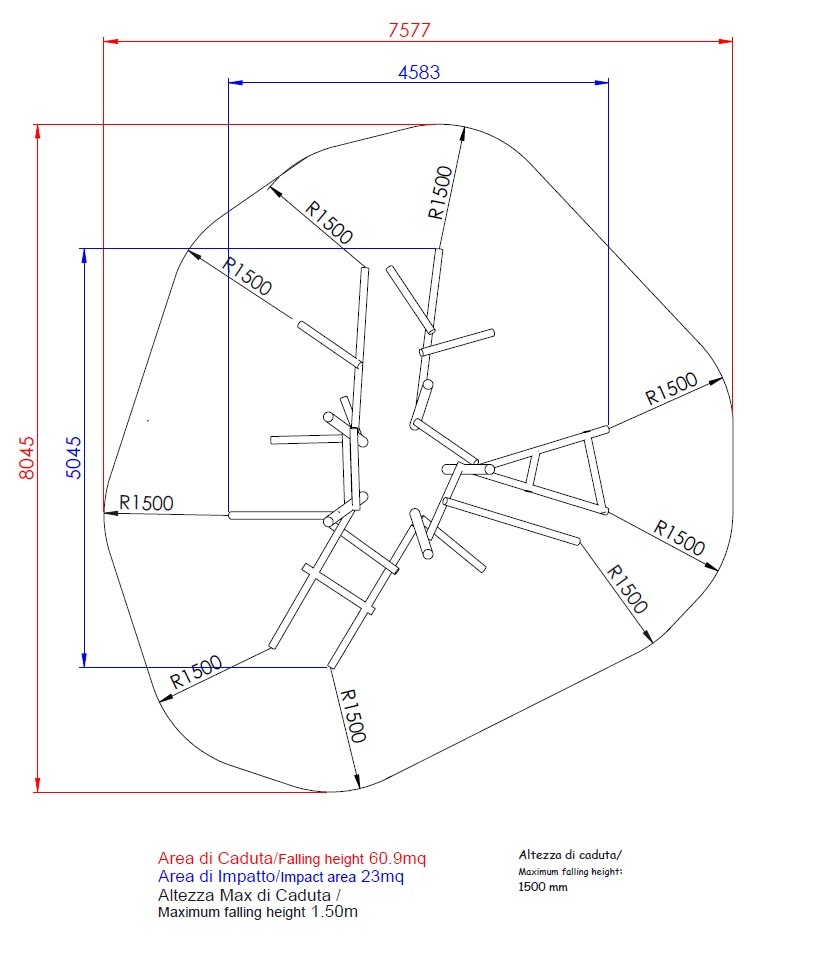 NR 1 Tibetan bridge-1 - The net is made of steel strands rope, 18 mm diameter, covered with a colored nylon braid, highly resistant. The knots are covered with shell-shape protections.