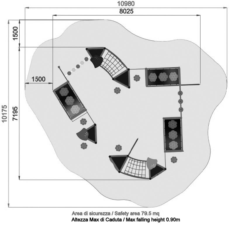 - NR 2 Tibetan bridge-1 - The net is made of steel strands rope, 18 mm diameter, covered with a colored nylon braid, highly resistant. The knots are covered with shell-shape protections.