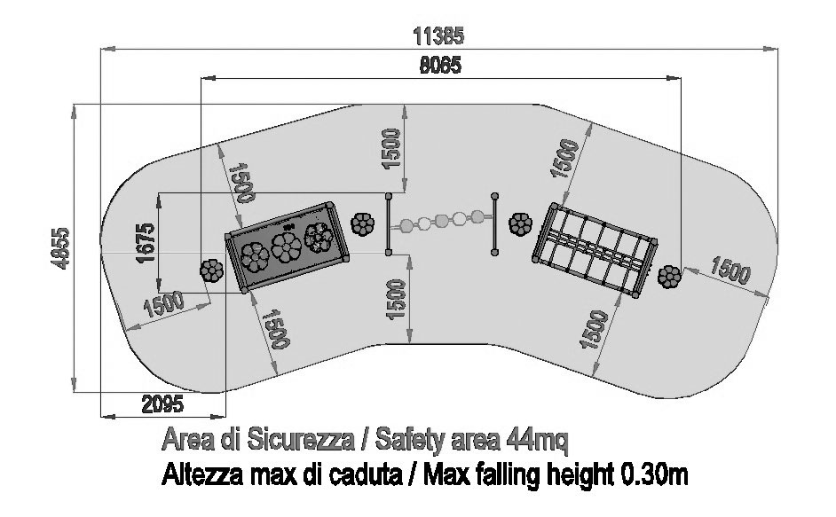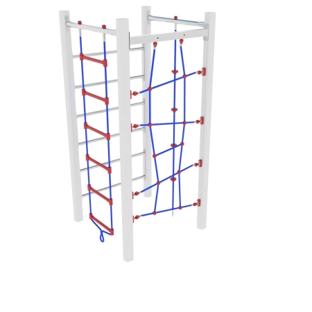 NR 1 Tibetan bridge-1 - The net is made of steel strands rope, 18 mm diameter, covered with a colored nylon braid, highly resistant. The knots are covered with shell-shape protections.