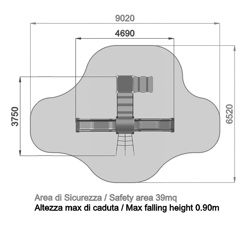 - NR 2 Straight Easy slide h 90 cm - Easy slide with lateral sides made of polyethylene and stainless steel slide certified according to the existing rules; starting platform height 90 cm; provided with a transversal bar.