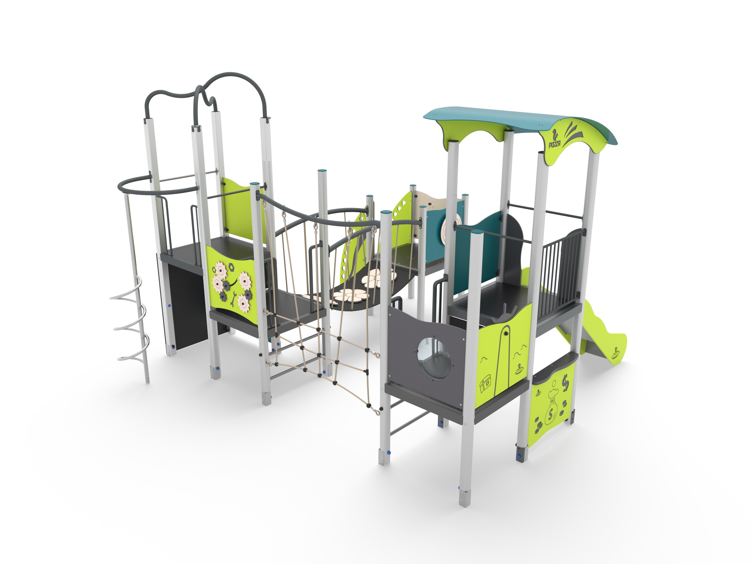 PIACENZA CON PERTICA SPIRALE - Multi tower play structure / AF623.PS-14 / Made of CAM compliant wood.
