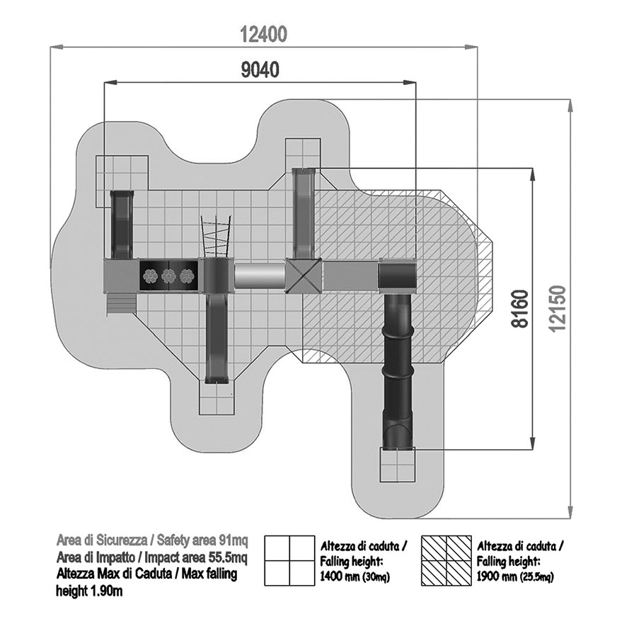 - NR 1 Straight slide-3 - Polyethylene slide certified according to the existing rules; starting platform height 90 cm; provided with a transversal bar.