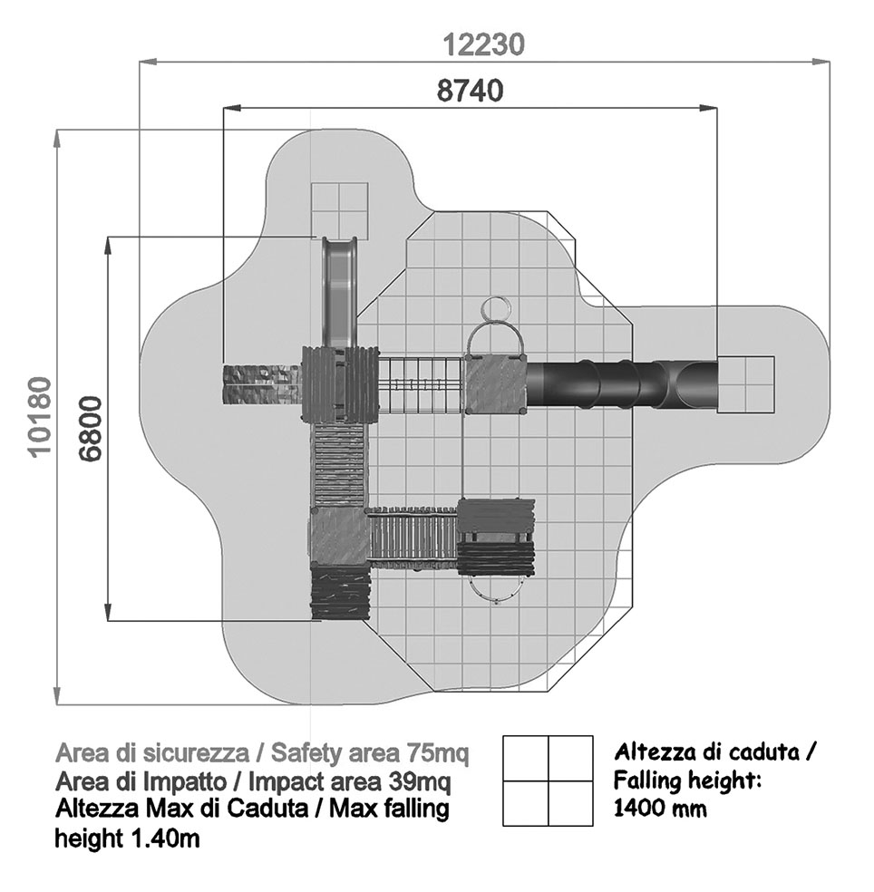 - NR 1 Straight slide-3 - Polyethylene slide certified according to the existing rules; starting platform height 90 cm; provided with a transversal bar.