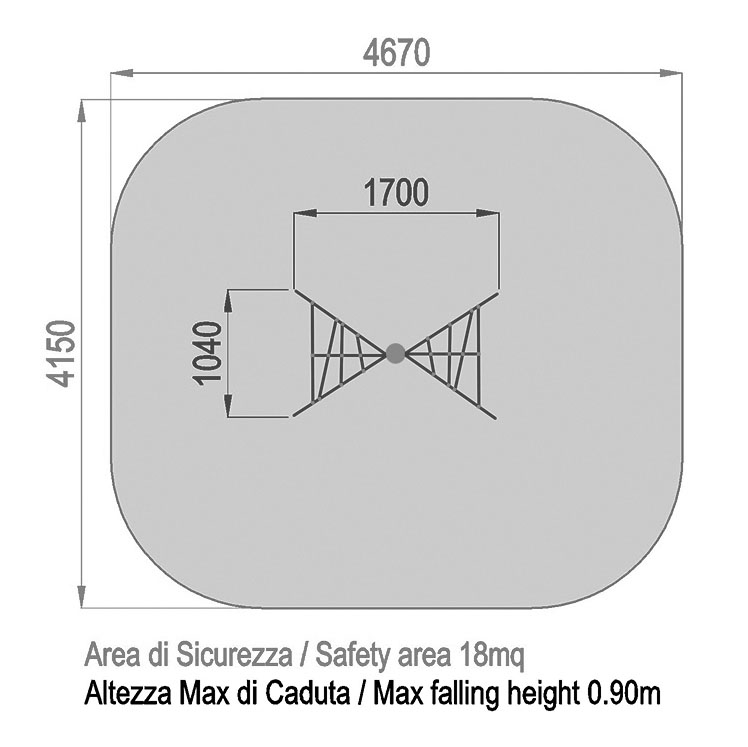 SARTIA PIRAMIDE ALLUMINIO - climbing nets for children / C0600.PAL-08ALU / Made of EN EV6060 anodized alumium 9x9cm custom mold with rounded edges, minimum thickness 2,7mm