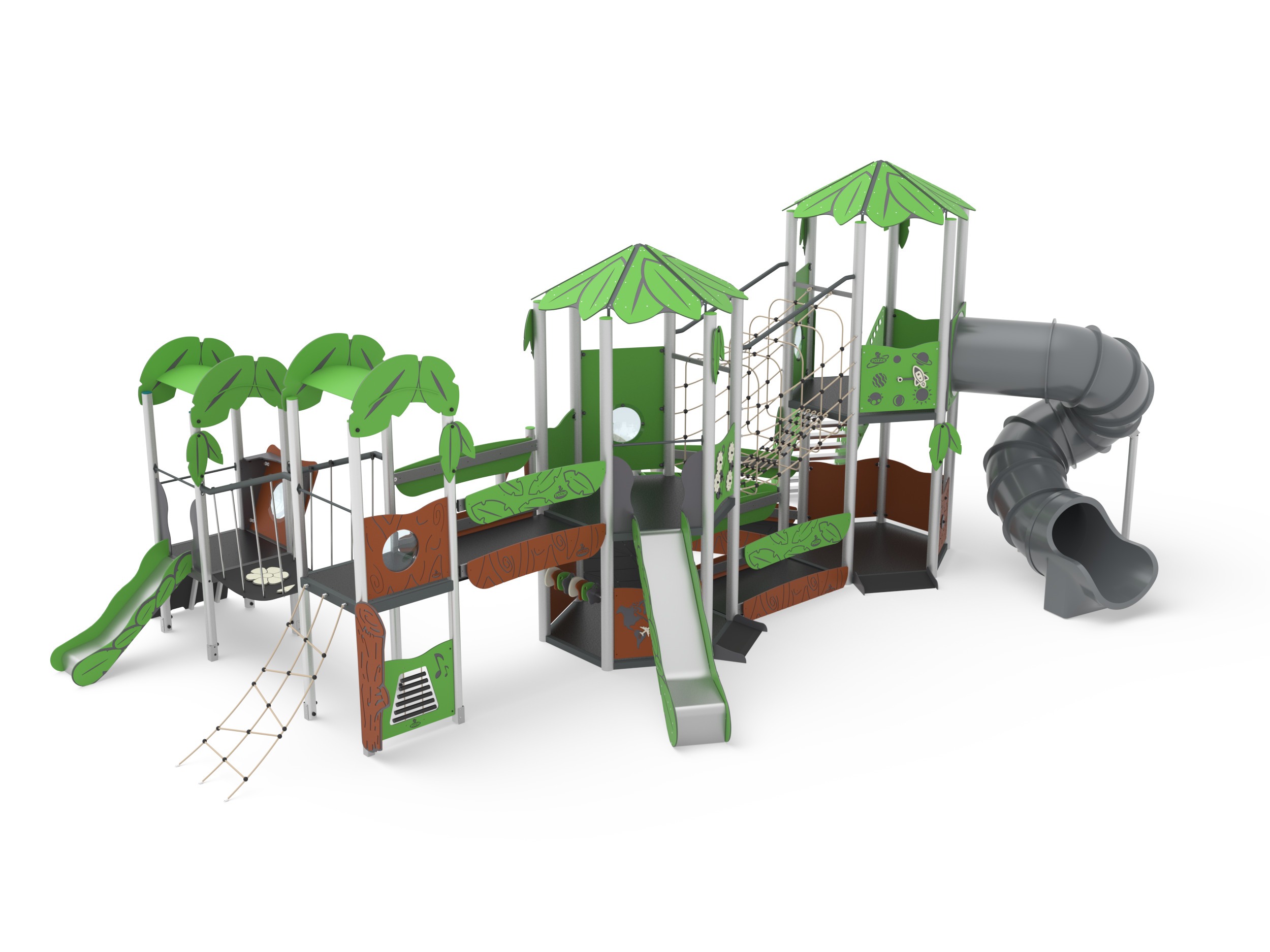 SATURNO WITH SLIDES - LEAVES - 4 MULTILEVEL TOWER STRUCTURE WITH SLIDES AND LIFTS / +AF301H19_L_ALU