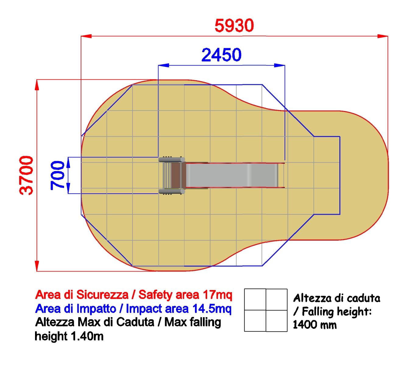 NR 1 Scivolo h 140 cm - Scivolo h140cm realizzato con scivolata in acciaio inox di larghezza 45cm modello inclusive per garantire l'utilizzo assistito e pannelli laterali in polietilene HDPE composto per il 51% di plastica riciclata pannelli laterali di protezione in polietilene e barra reggispinta di lunghezza 86 cm realizzata in acciaio verniciato. Tutta la bulloneria e gli elementi di fissaggio in acciaio inox