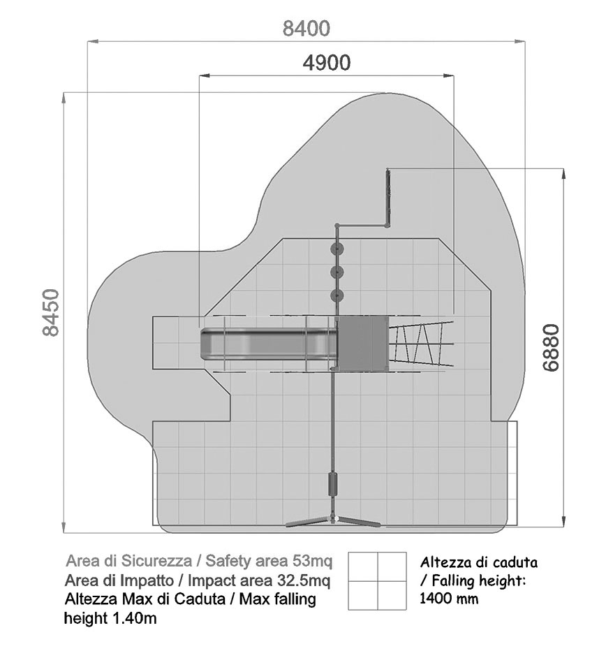 SCIVOLO T-REX CON ALTALENA E PALESTRA LEAVES - single tower with slide, gym, lifts and swing / S0800.ALT-01.PAL-01LEAVES / Made of EN EV6060 anodized alumium 9x9cm custom mold with rounded edges, minimum thickness 2,7mm