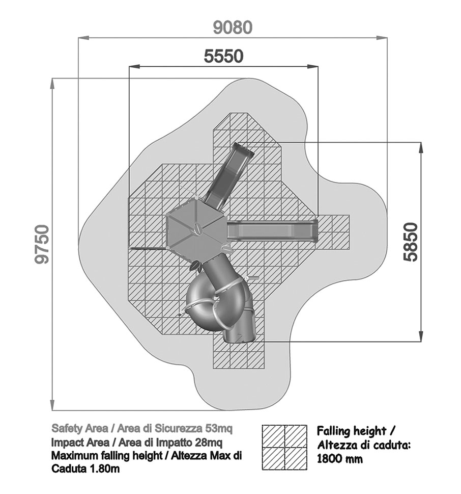 TORRE DI BABELE BABY CON SCALA GRADONI LEAVES - single multilevel tower with slide and lifts / AF102SSUB.SG-9 style LEAVES / Made of EN EV6060 anodized alumium 9x9cm custom mold with rounded edges, minimum thickness 2,7mm