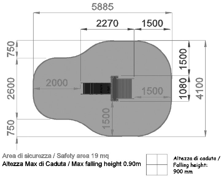 NR 1 Straight slide h 90 cm - slide with lateral sides made of polyethylene and stainless steel slide certified according to the existing rules; starting platform height 90 cm; provided with a transversal bar.