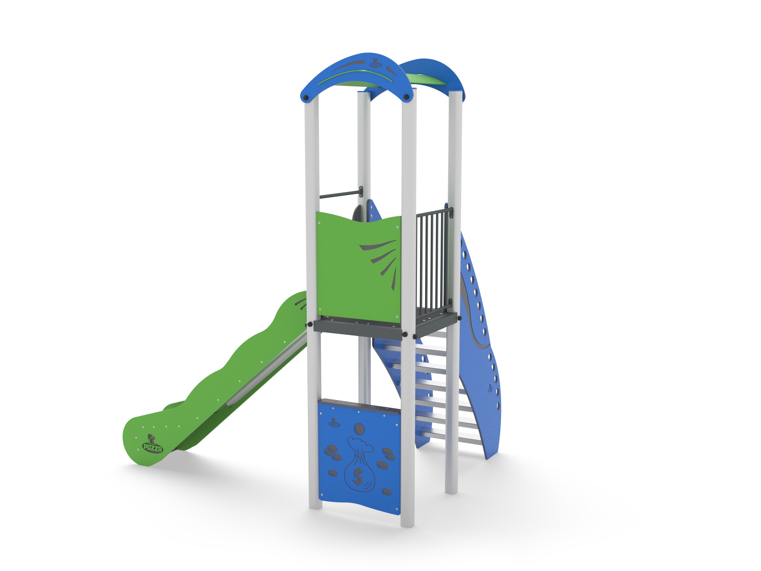 ALBICOCCA CON SCALA - EASY - SINGOLA TORRE CON SCIVOLO E RISALITA / +AE100.S-14_ALU / Prodotto da azienda certificata ISO 9001, ISO 14001, PEFC e FSC. Realizzato in alluminio EN AV6060 profilo speciale mm 90x90 con spigoli arrotondati raggio mm 32 con anime interne di rinforzo. Spessore minimo mm 2,7. Tutta la bulloneria in acciaio inox.