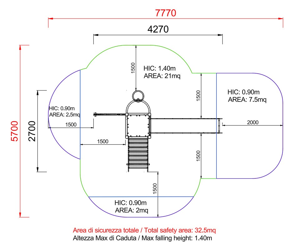 - NR 1 NG Palestra rete - Realizzata con struttura portante in acciaio verniciato, rete di arrampicata in corda di acciaio rivestita in nylon
