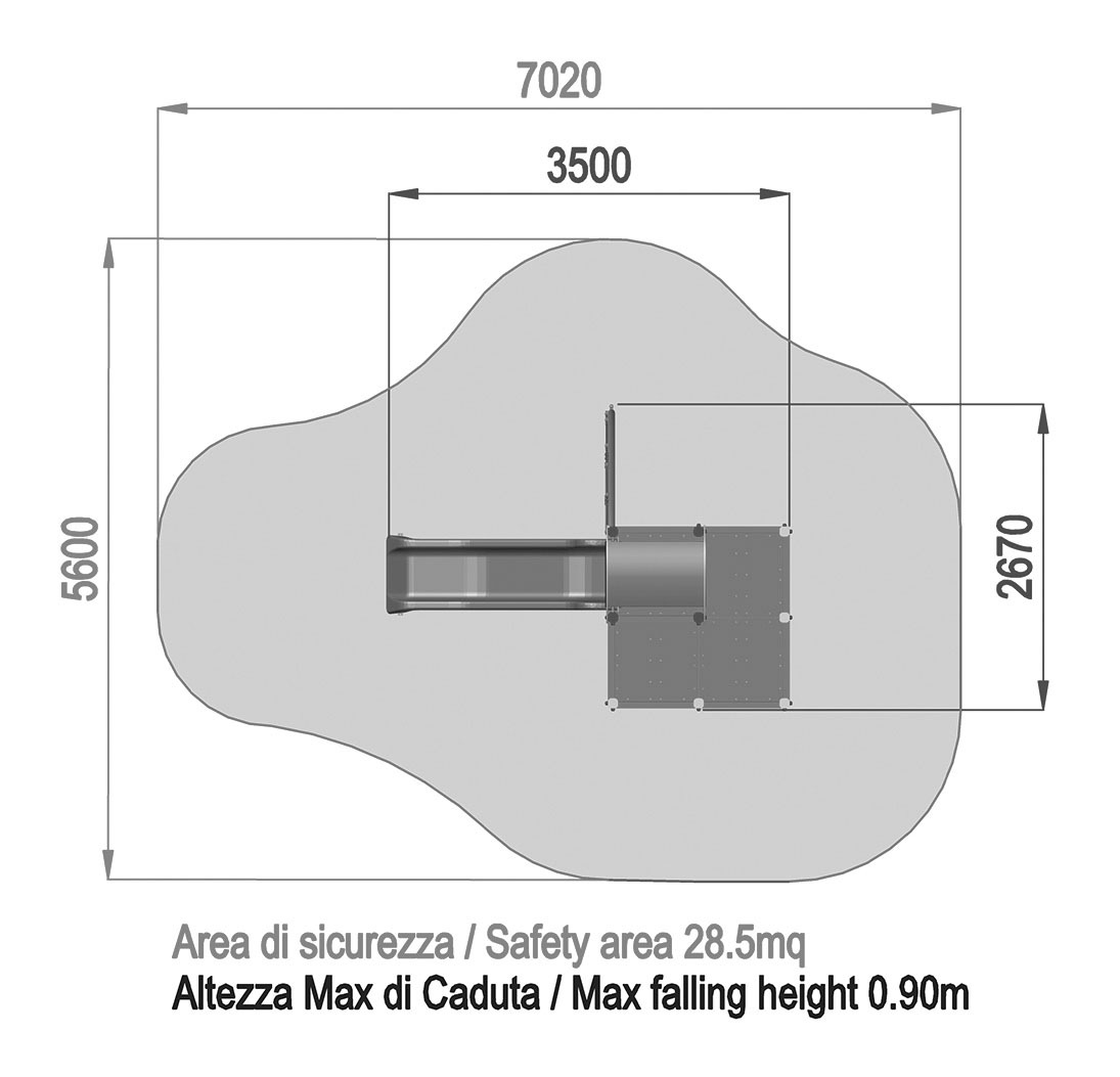 - NR 1 Scivolo Easy h 90 cm - Scivolo Easy h90cm realizzato con scivolata in acciaio inox di larghezza 45cm e pannelli laterali in polietilene HDPE composto per il 51% di plastica riciclata pannelli laterali di protezione in polietilene e barra reggispinta di lunghezza 66 cm realizzata in acciaio verniciato. Tutta la bulloneria e gli elementi di fissaggio in acciaio inox