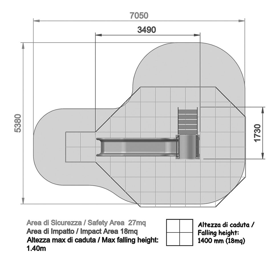- NR 1 Scivolo Easy h 140 cm - Scivolo Easy h140cm realizzato con scivolata in acciaio inox di larghezza 45cm e pannelli laterali in polietilene HDPE composto per il 51% di plastica riciclata pannelli laterali di protezione in polietilene e barra reggispinta di lunghezza 66 cm realizzata in acciaio verniciato. Tutta la bulloneria e gli elementi di fissaggio in acciaio inox