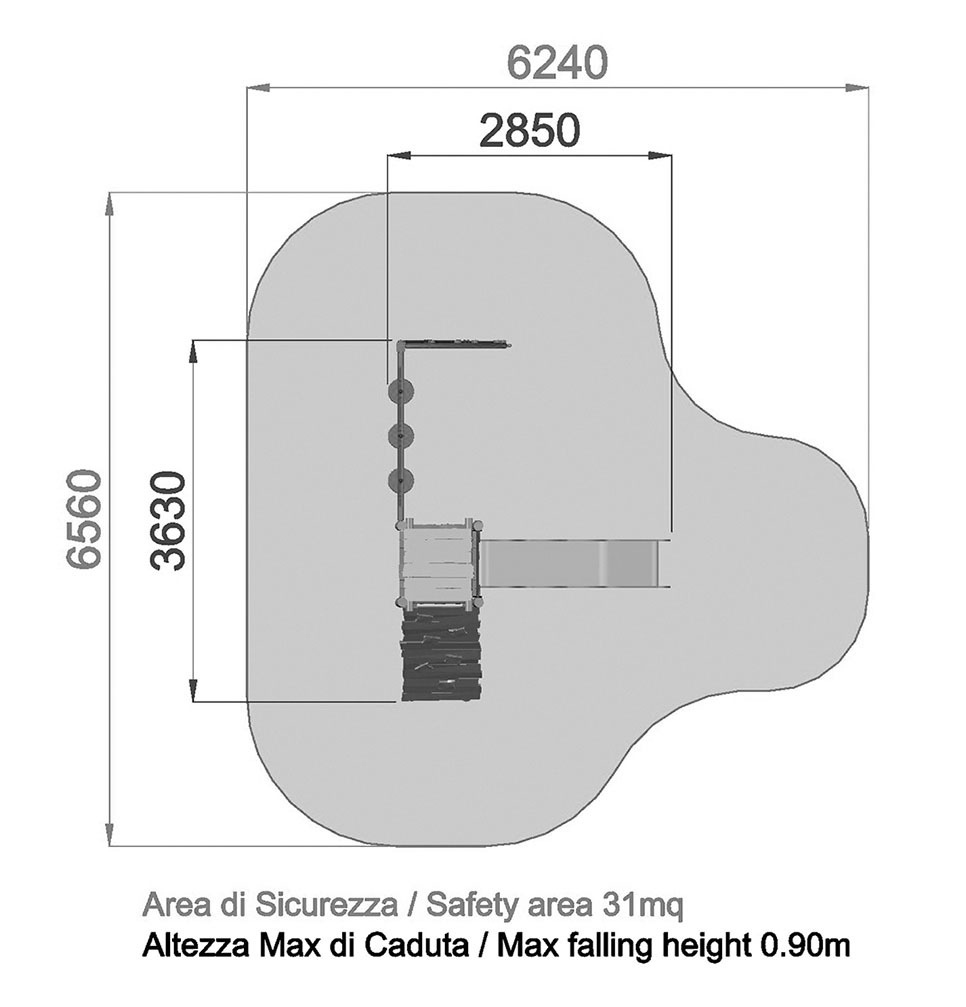 - NR 1 Pedana climbing h 90 cm - Pedana climbing per torretta h90 realizzata con pannello in HDPE con rivestimento antiscivolo. Appigli per arrampicata in resina. Struttura portante in acciaio zincato e verniciato. Barra reggispinta lunghezza 86cm. Bulloneria ed elementi di fissaggio in acciaio inox.