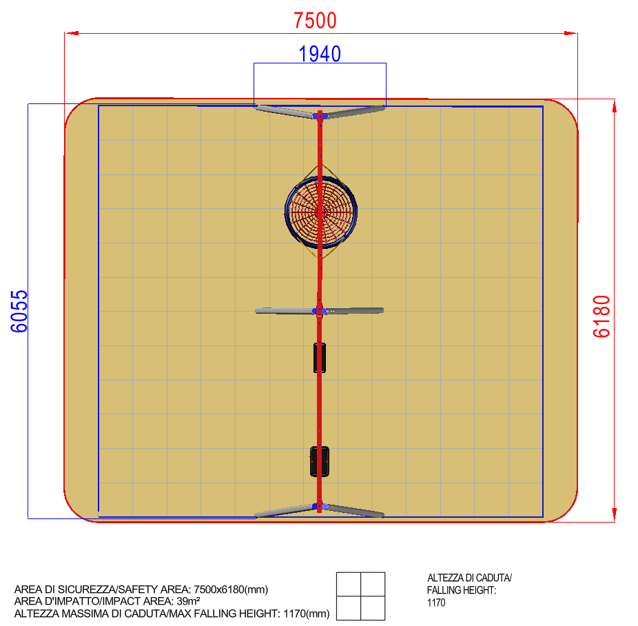 ALTALENA 4 POSTI MISTA 2 - ALTALENA 4 POSTI 2 / +B0400.B0300.110_ALU / Prodotto da azienda certificata ISO 9001, ISO 14001, PEFC e FSC. Realizzato in alluminio EN AV6060 profilo speciale mm 90x90 con spigoli arrotondati raggio mm 32 con anime interne di rinforzo. Spessore minimo mm 2,7. Tutta la bulloneria in acciaio inox.