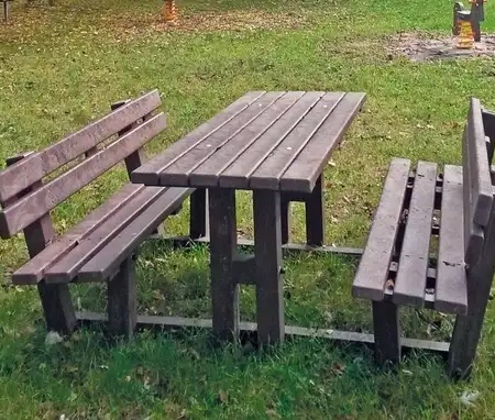 COMPOSIZIONE FIRENZE IN PALSTICA RECICLATA - tavolo pic-nic con panchine in plastica riciclata / .I0300R / Struttura dell'attrezzatura realizzata in plastica riciclata al 100% conforme al decreto CAM per l'arredo urbano. I nostri prodotti NON contengono plastiche provenienti da scarti industriali e segatura.