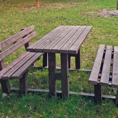 DOLOMITI IN RICICLATO - Panchina in plastica riciclata con 6 stecche / H1020R / Struttura dell'attrezzatura realizzata in plastica riciclata al 100% conforme al decreto CAM per l'arredo urbano. I nostri prodotti NON contengono plastiche provenienti da scarti industriali e segatura.