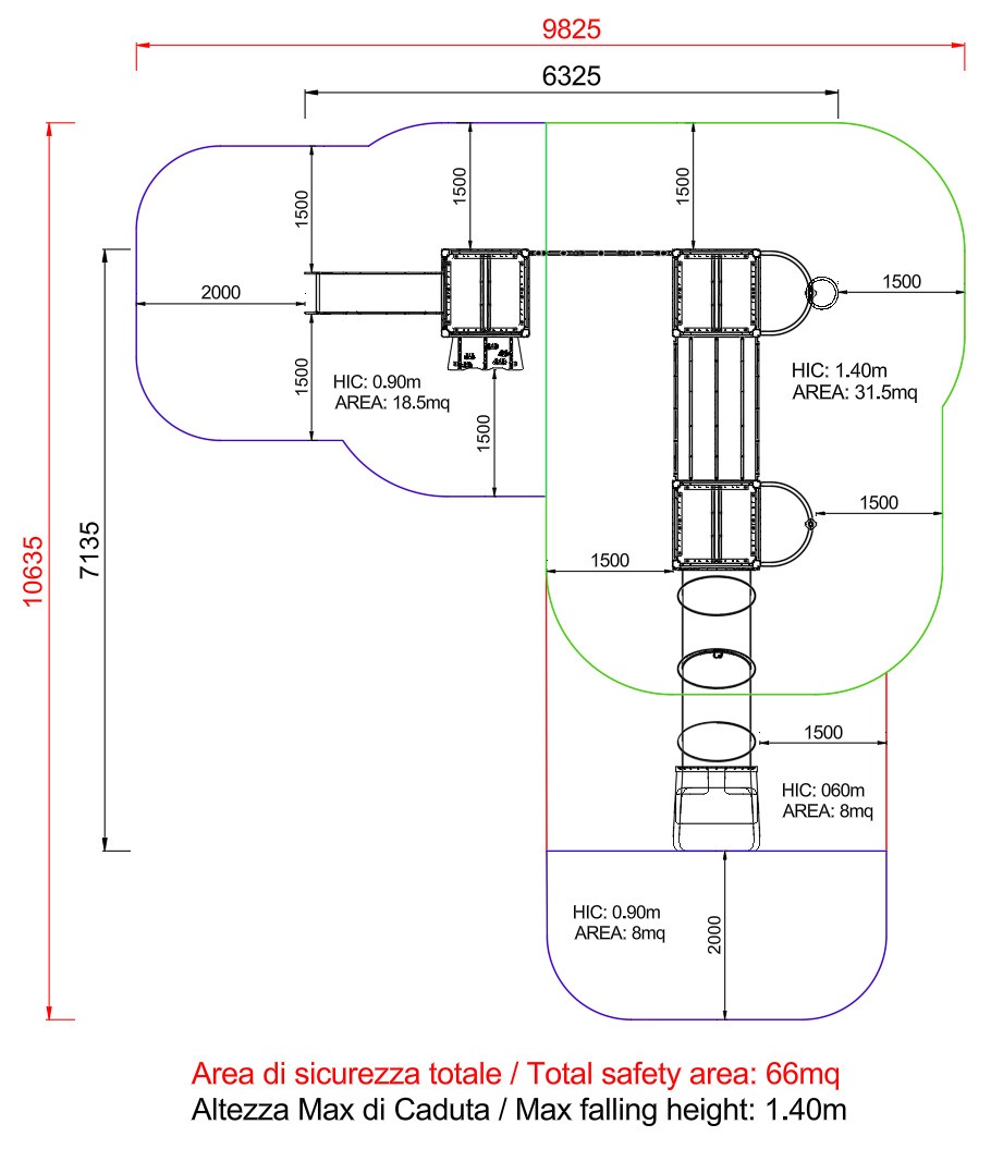 - NR 1 NG Scivolo a tubo h140 dritto - scivolo in polietilene rotazionale LLDPE realizzato secondo le normative vigenti, pedana do partenza a 140 cm, provvisto di pannello di ingresso, tutta la bulloneria in acciaio inox