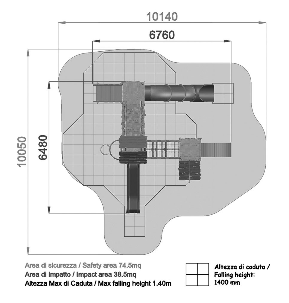 - NR 1 Scivolo a tubo h 140 cm, diametro 80 cm - scivolo in polietilene rotazionale LLDPE realizzato secondo le normative vigenti, pedana do partenza a 140 cm, provvisto di pannello di ingresso, tutta la bulloneria in acciaio inox