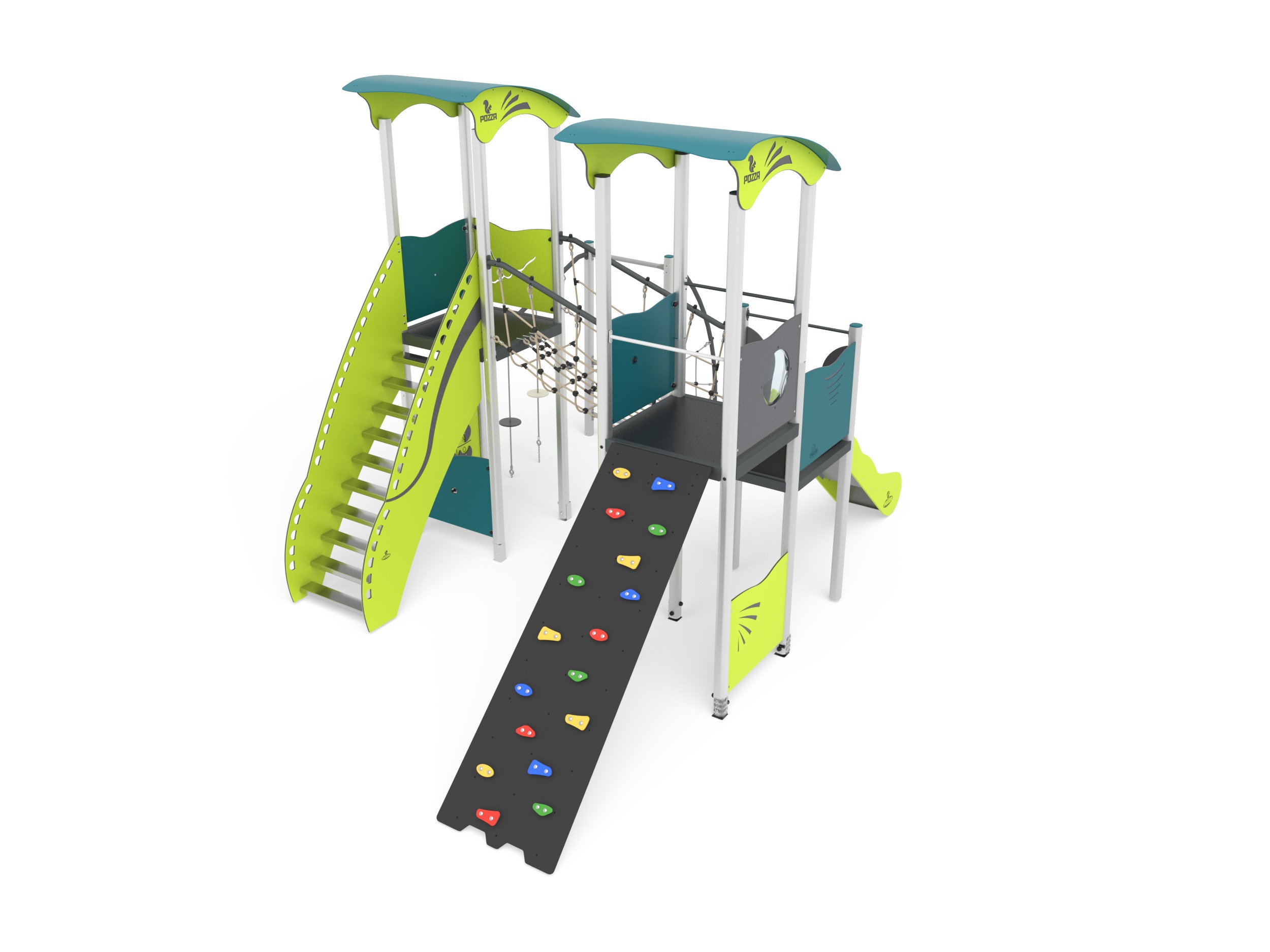 STRUTTURA MULTILIVELLO, PALESTRA, PONTE TIBETANO, SCIVOLO E PALO POMPIERI.