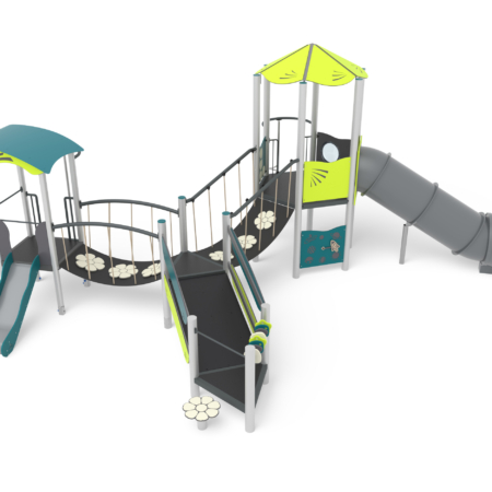 FATA BABY CON SEDUTA - FANTASY - SINGOLA TORRE CON SCIVOLO E RISALITA / +AF100B.GT-07_ALU / Prodotto da azienda certificata ISO 9001, ISO 14001, PEFC e FSC. Realizzato in alluminio EN AV6060 profilo speciale mm 90x90 con spigoli arrotondati raggio mm 32 con anime interne di rinforzo. Spessore minimo mm 2,7. Tutta la bulloneria in acciaio inox.