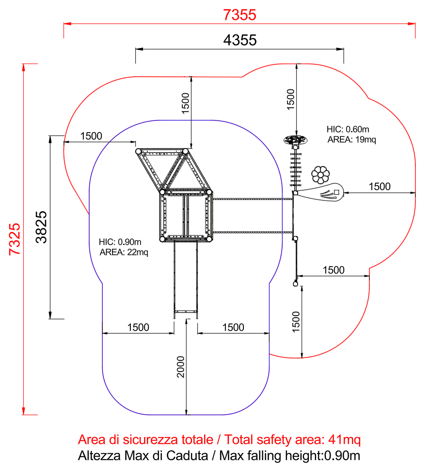 | Area di sicurezza (m): | 7,4 x 7,4 |